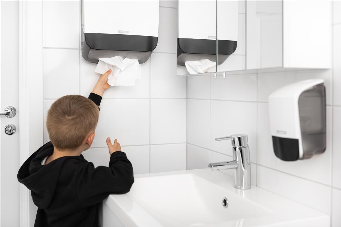 Otwierana do góry obudowa ułatwia szybkie uzupełnianie wkładów, a stabilne prowadzenie ręczników zapewnia płynne i kontrolowane dozowanie.