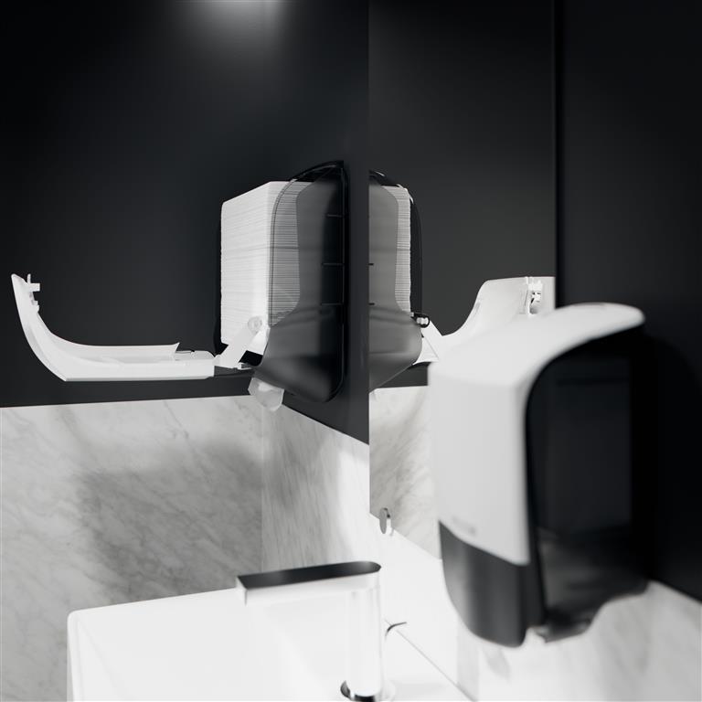 Otwierana do góry obudowa oraz przezroczyste boki znacząco ułatwiają kontrolę stanu napełnienia i szybkie uzupełnianie ręczników.