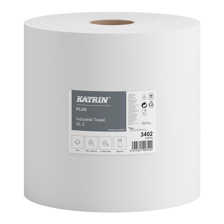 Katrin 3402 to mocne i chłonne czyściwo przemysłowe z 2 warstwowej celulozy klejonej.