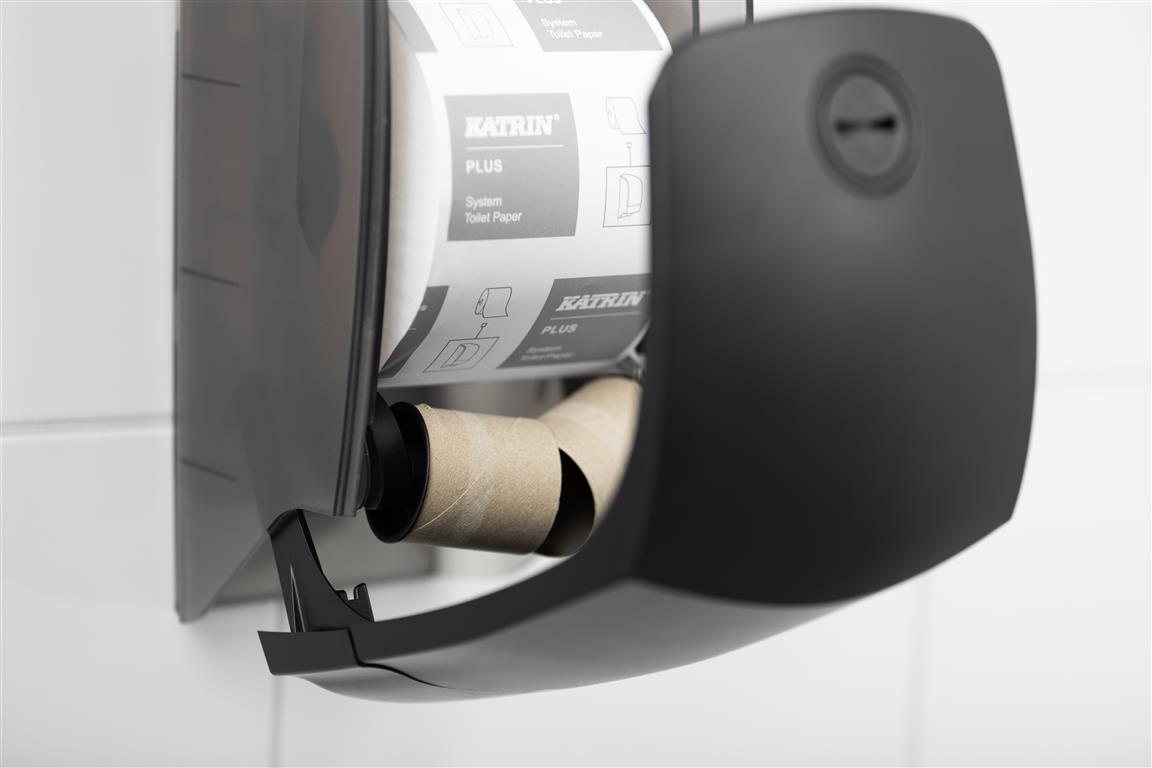 - 2 rolki Katrin System – papier dostępny ciągle, bez przerwy na wymianę w kluczowym momencie.