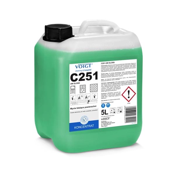 VOIGT C251 UNI GLOSS to skoncentrowany alkoholowy środek do mycia powierzchni szkliwionych, szkła i porcelany.