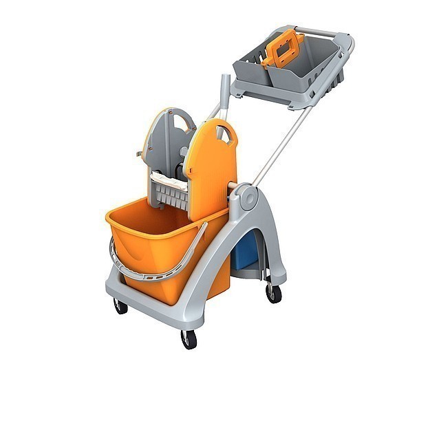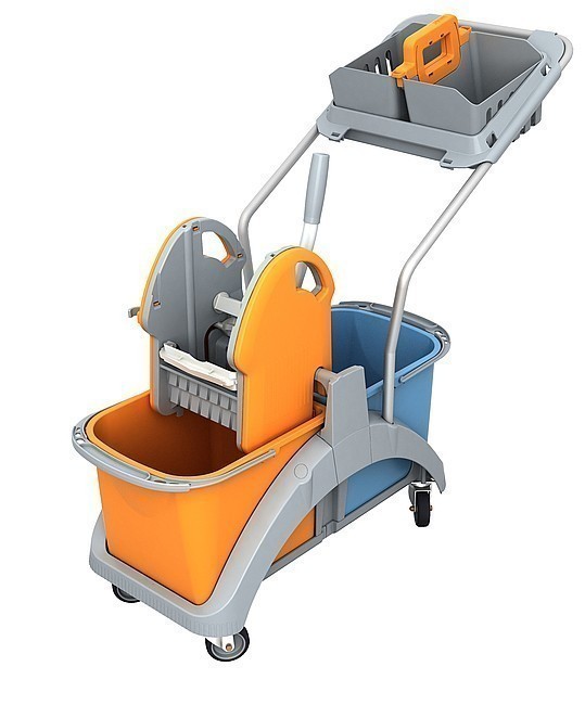Wózek serwisowy 2-wiaderkowy z wyciskarką i koszyczkiem na akcesoria